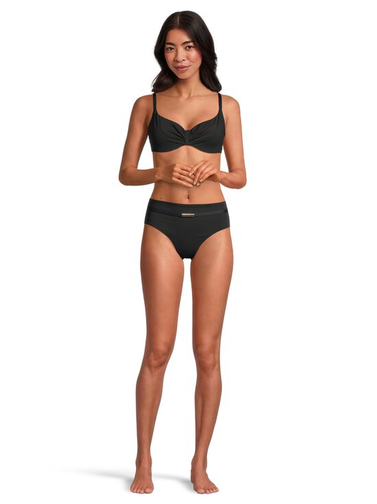 The Icon Full Brief bikini bottoms are a timeless and elegant choice for any occasion. The high-waisted design offers a flattering fit and provides comfortable coverage. The bottoms feature a sleek, minimalist design with a subtle gold detail on the waistband. The fabric is soft, smooth, and stretchy, making it perfect for all-day wear. The fabric is made of 80 % polyamide and 20 % elastane, which makes it durable and quick-drying. The material is also resistant to wrinkles and fading, making it a practical choice for your summer wardrobe.