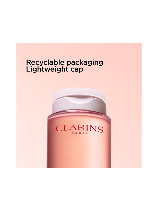 Svaigs micelārais ūdens viegli noņem visu kosmētiku uzreiz. Jutīgai ādai piemērota formula maigi noņem kosmētiku no sejas, acu un lūpu ādas. Noņem arī netīrumus un piesārņojuma pēdas. Sastāvā ir Clarins [Gentle Complex] savienojums, kas nomierina un mīkstina ādu, kas sastāv no organiskā rūgtā ķirbja un citrona balzama ekstrakta.