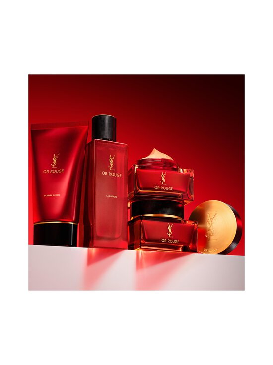 Or Rouge La Gelée Pureté, grezns sejas attīrīšanas līdzeklis. Satur safrāna sakņu ekstraktu, miljoniem subcelulāru frakciju un vērtīgas augļu eļļas no Ourika Community Gardens dārziem. Maigi un efektīvi noņem netīrumus no ādas. Aktivizējot ar ūdeni, želeja pārvēršas maigā, zīdaini baltā atsvaidzinošā attīrošā pieniņā. Jau no pirmā soļa lieliski sagatavo ādu jauneklīgam rituālam. Jaunā greznā formula satur 98% dabiskas izcelsmes sastāvdaļu. Jau no pirmās lietošanas reizes āda uzreiz izskatās tīra no netīrumiem, netīrumiem un putekļiem, kā arī jūtas svaigāka un mitrinātāka. Pēc mēneša āda ir gludāka, mīkstāka un tai ir patīkama sajūta. Ādas aizsargslānis ir saglabāts un izskatās gludāks. Palutiniet sevi ar izcilu maņu pieredzi ar La Gelée Pureté, smalku attīrīšanas līdzekli. Caurspīdīgais sarkanais gēls noņem ādas netīrumus.